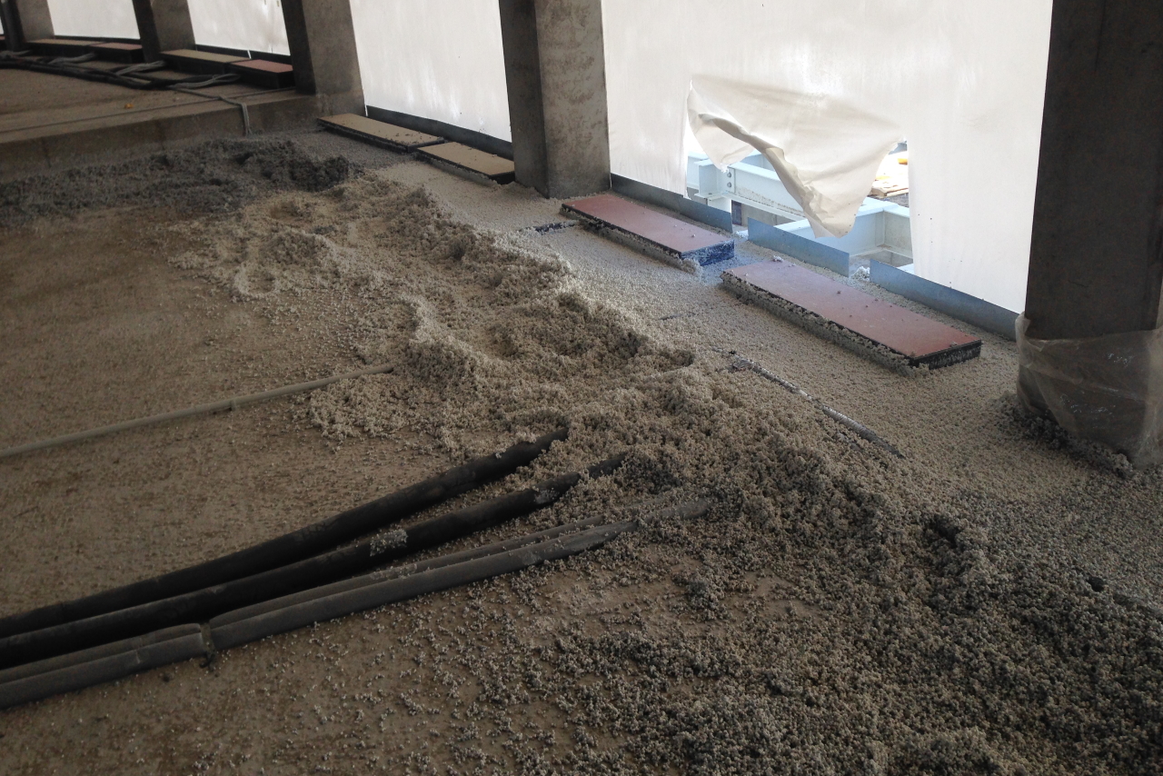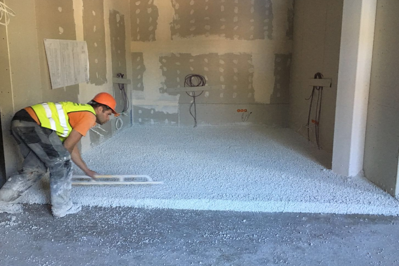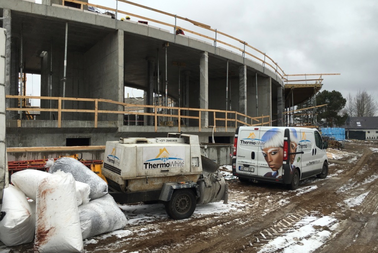 Thermowhite team performed coating of floor sound/thermal insulation system Thermowhite (WD 100R + PE 5/300) in this object with a total volume of more than 5,000 m2.